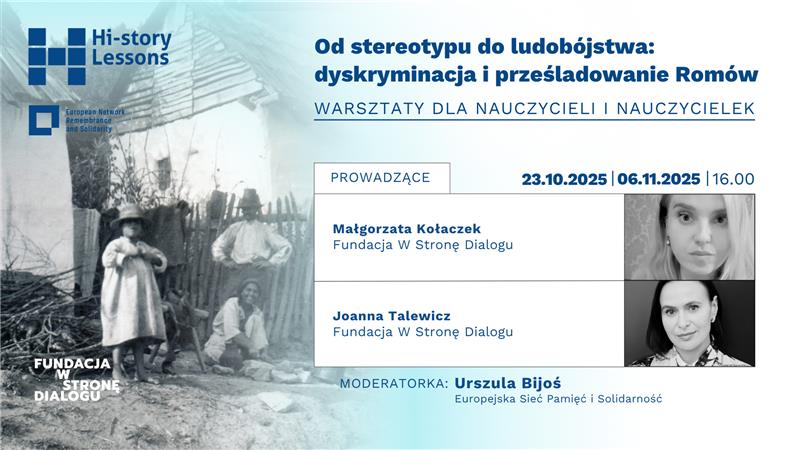 Seria warsztatów online poświęcona jest mechanizmom prowadzącym od stereotypów i uprzedzeń do wykluczenia i przemocy. Na przykładzie historii i współczesnych doświadczeń Romów i Romek uczestnicy poznają źródła antyromskich uprzedzeń, historię Zagłady tej społeczności w czasie II wojny światowej oraz jej konsekwencje w XX i XXI wieku.