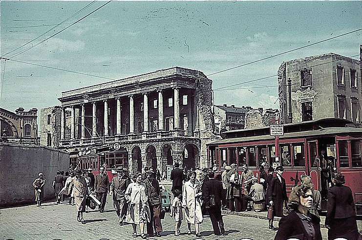 The Second World War was a very significant event in Warsaw’s history, resulting in the city’s widespread destruction. Innumerable old buildings were destroyed, and the urban structure was deeply affected. Many historic monuments were lost forever, while others were rebuilt or demolished and replaced with modern housing. The square bore witness to all of these events. During the Second World War, it was a market square, but it was also located on the border of the Warsaw ghetto, which was completely demolished by the Nazis after 1943.