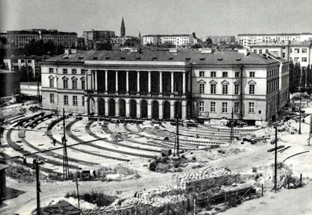 One of the buildings reconstructed just after the Second World War was a Baroque palace. This resulted in the palace being restored to its original 18th-century appearance, rather than how it had been modified in the first half of the 20th century. In 1970 the decision was made to move the palace to a location that would emphasise the aesthetic value of the historic urban plan. Consequently, it was rotated by approximately 90 degrees. During this process, some parts of the palace were demolished.