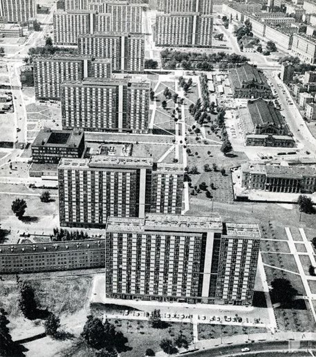 A housing estate was built in the 1960s and 1970s. It owes its name, Osiedle za Żelazną Bramą (Iron Gate Estate), to the square. It was designed to accommodate 30,000 people, who were expected to live in large, modern apartment blocks.