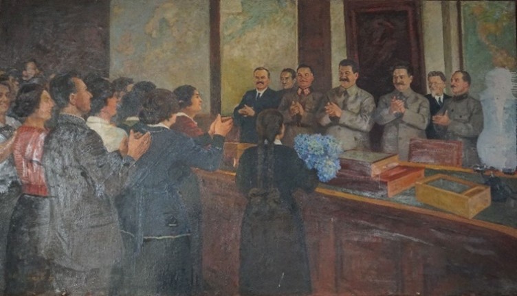 accounts. The Georgian Delegation to Stalin in the Kremlin (1936) is still on display in the Joseph Stalin Museum in Gori, Georgia. As a result of Stalin’s purge, two people were removed from the painting: one right