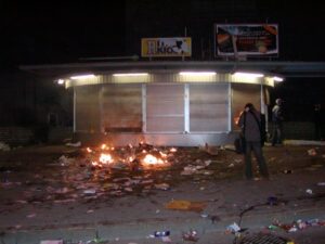 Riots after the removal of the monument to the liberators of Tallinn, the so-called Bronze Soldier, commemorating the victory of the Red Army and the ‘liberation’ of Estonia in 1944. As a result of riots and clashes between protesters (mainly the Russian minority) and the police, one person was killed. Tallinn, Estonia, April 2007.