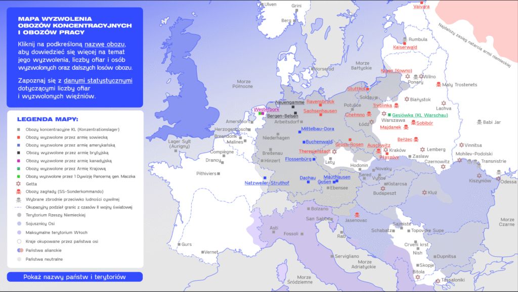 🗺️ Interaktywną infografikę – Mapę wyzwolenia obozów koncentracyjnych i pracy, pomagającą uczniom zobrazować zakończenie wojny.